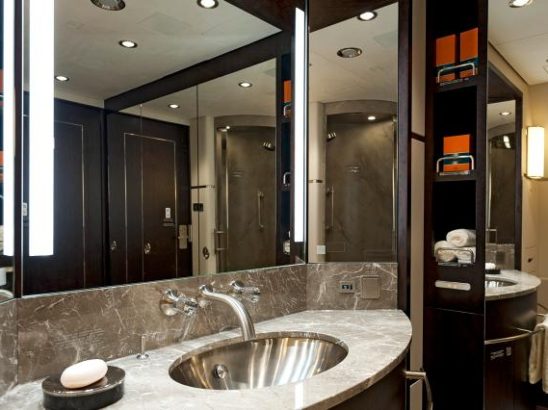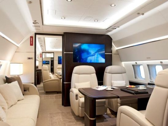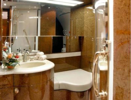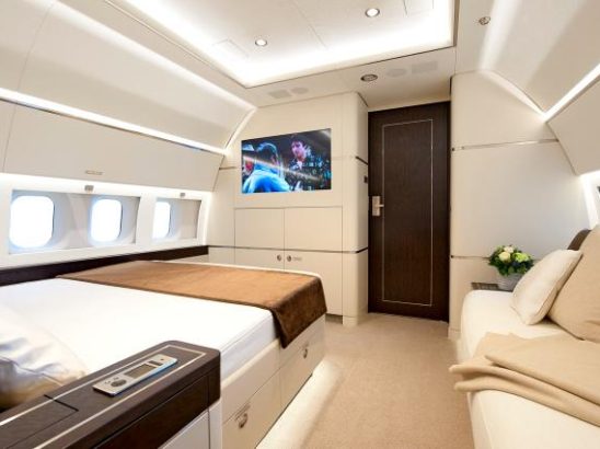 The interior was designed by a famous Marc Newson who created a clean modern futuristic look. Interior completion and outfitting was made at Lufthansa Technik in Hamburg with no expenses spared. Interior materials include fabric, silk carpet, leather side boards, composites and real wood laminate.