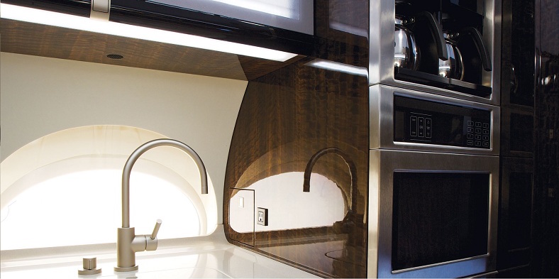 The cabin interior was completed with Enhanced Soundproofing and features a high gloss medium brown wood cabinetry complimented by polished satin coloured plating and attractive carpeting throughout the cabin.